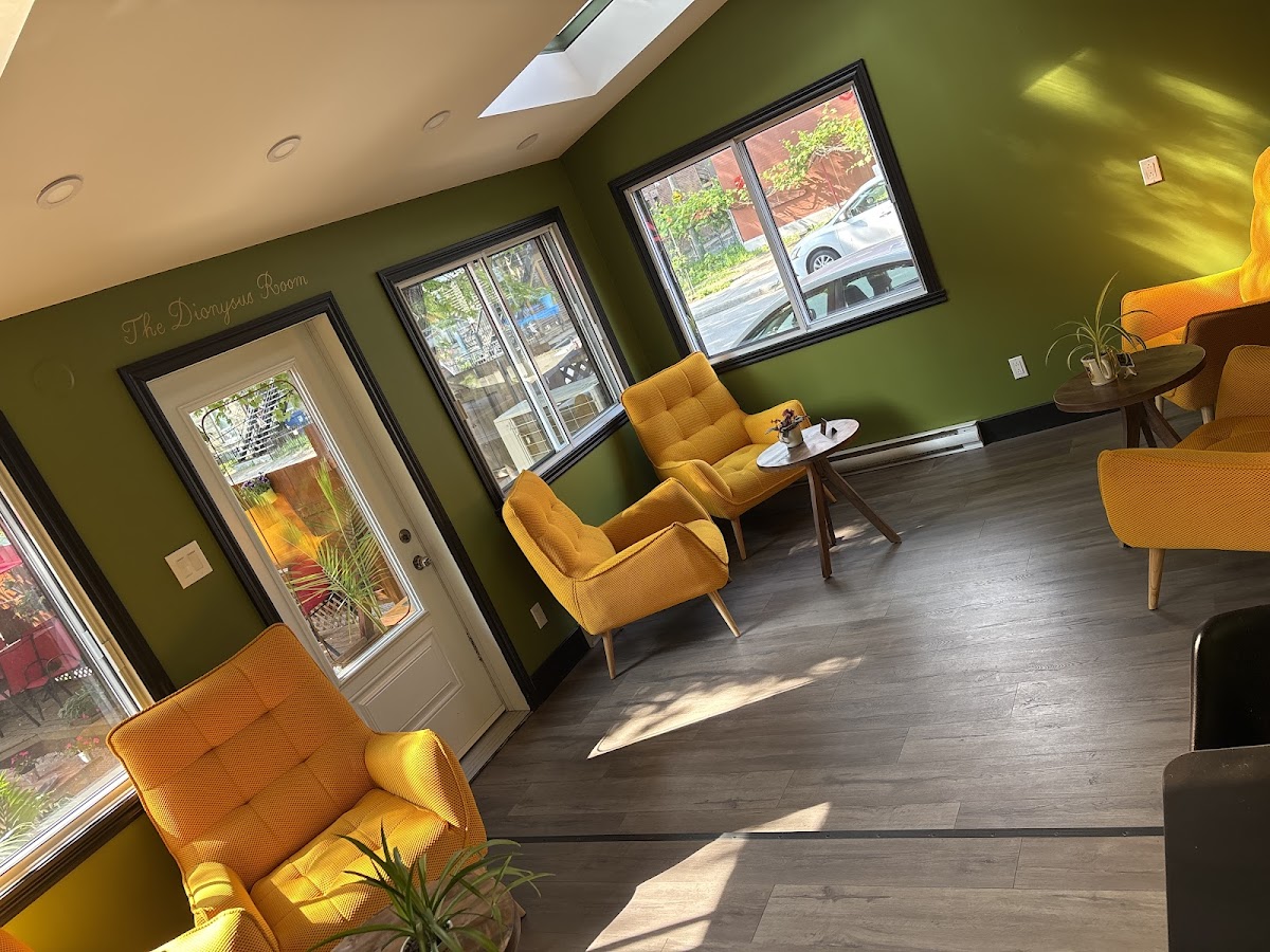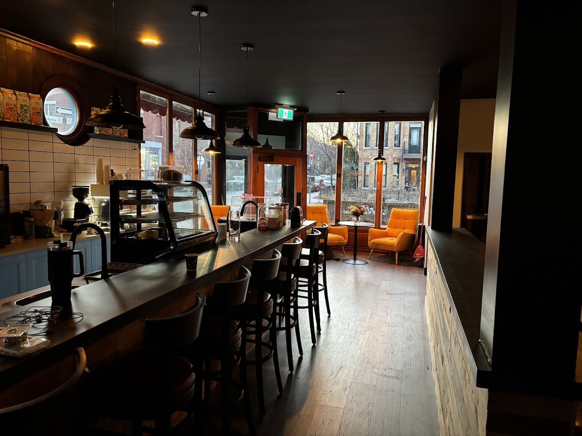 The atmosphere is relaxed yet lively: a mix of solo visitors on their laptops tapping away on the free Wi-Fi and small groups chatting over drinks. The back garden creates a rare patch of calm in the urban surroundings, perfect for when the summer heat builds or when you want a moment away from Montreal’s usual hustle. Plus, easy access to power outlets and ample seating means it works well for longer stays.